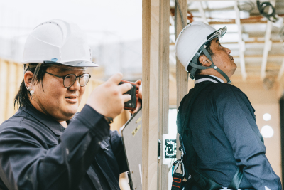 私たちが目指しているのは、高品質かつ安全性の高い建物づくり。何年先までもフリーメンテナンスで利用できるような長持ちする品質。自然災害にも負けず、人々が安心して住むことのできる確かな安全性。双方を実現する会社でありたいと考えています。そのために施工管理一人ひとりが建築のプロとして、質の高い仕事を積み重ねていけるような会社の制度づくりや組織体制づくりを進めています。日本の施工品質は世界でも最高レベル。九州で一番の施工品質を誇る会社、そして日本一・世界一の施工品質を目指して、建築のプロ集団を育てていきます。