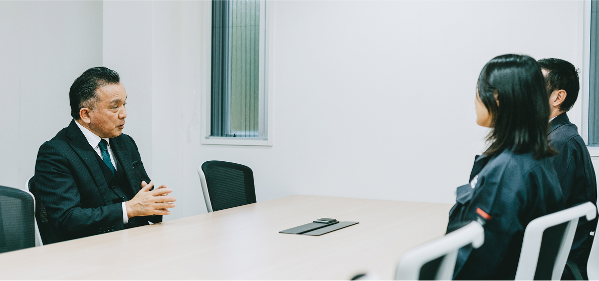 - 現場監督は、元気が大事ですからね。現場に行って、元気じゃないと仕事にはならないので、Kさんならきっと活躍してくれるだろうと思いました。Sさんについては、当時は資格の有無に重きを置いていたので経験内容はあまり重要視していませんでしたが、今となっては所長ですからね。Sさんのように未経験から所長になれる。会社というものは、夢がないといけないと思ってます。