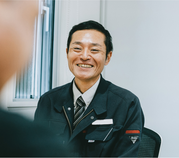 - とても風通しの良い社風だと思います。社長ともこうやって話すことができるし。わからないことは質問をすれば、課を飛び越えても誰かが答えてくれる。事務員さんとも話しやすいし、なんでも言える雰囲気です。