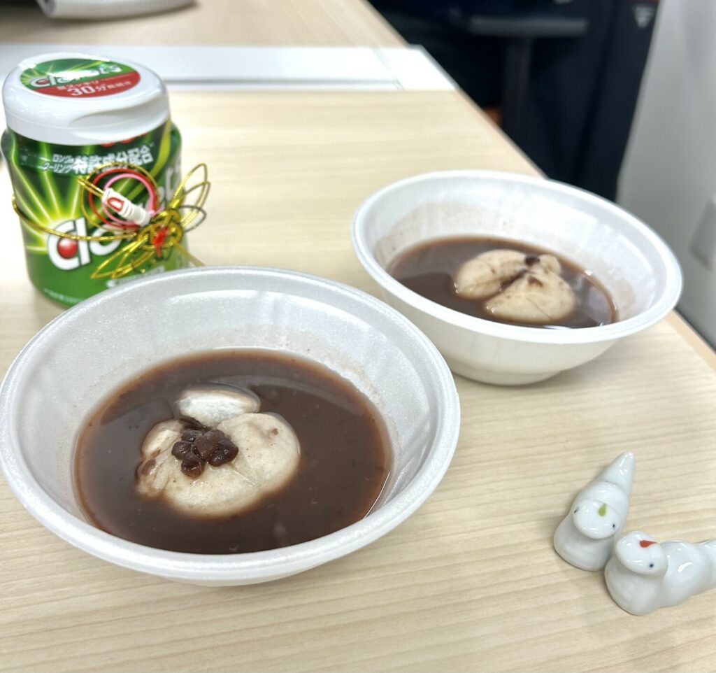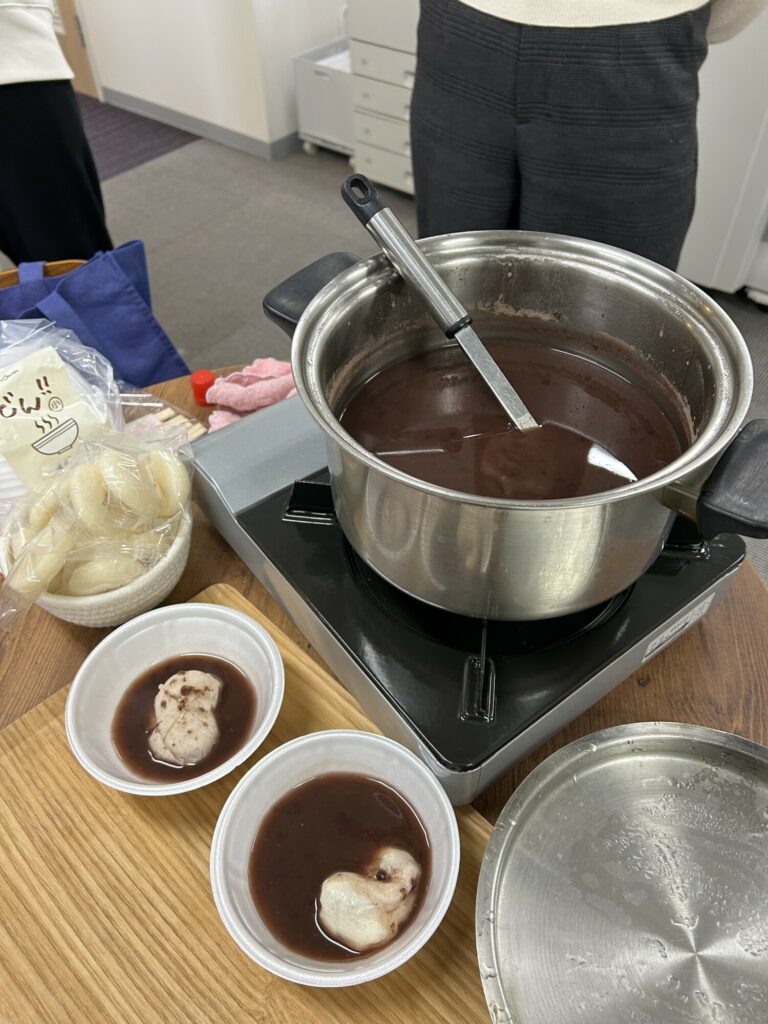 M課長お手製のおぜんざいは心に染みる美味しさで皆でおかわりをいただきました!
