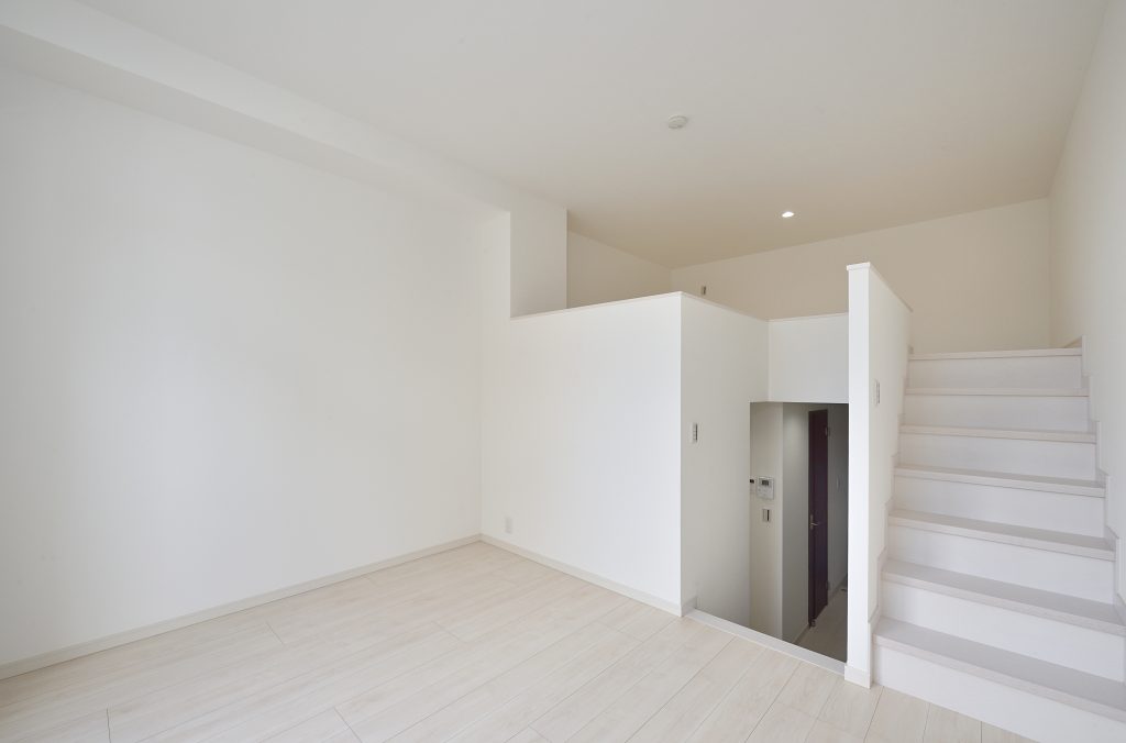 1Kの2階建てのステップフロアを取り入れた間取りでロフトがついています。